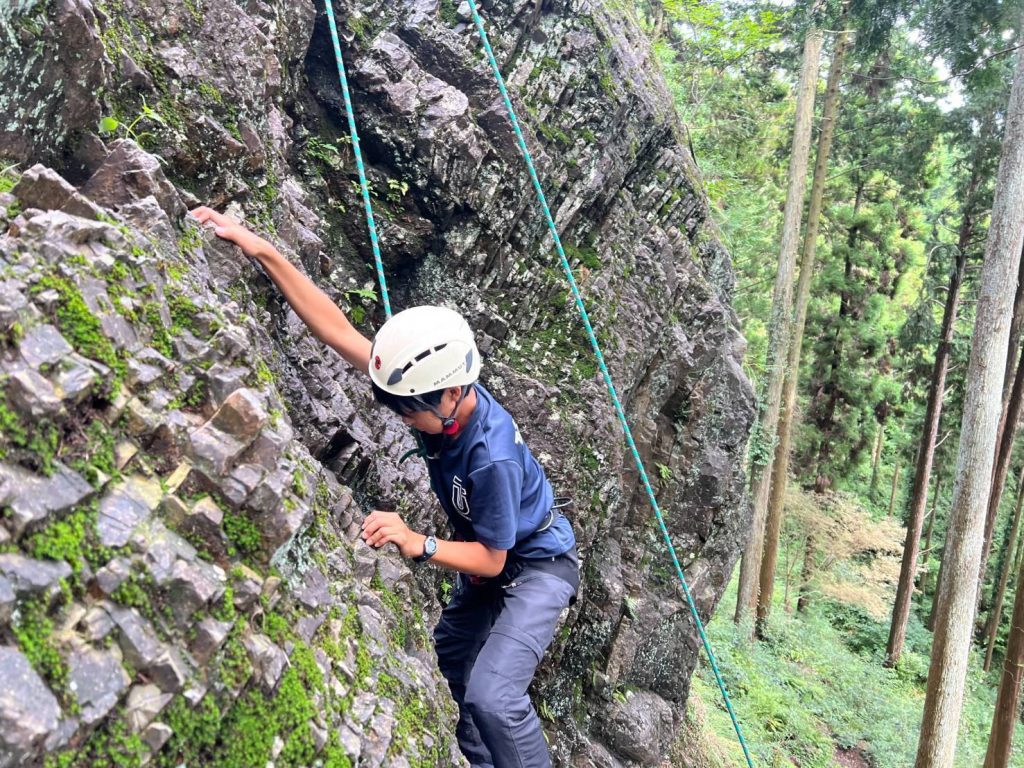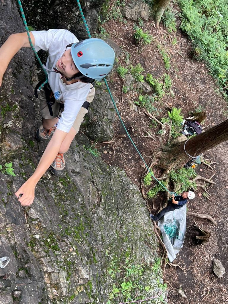 まずはハーネスの付け方、ロープワーク、ビレイなどを学んでから予め上からロープが垂れ下がっている状態から登るトップロープクライミングを学びました。最初は上り方が覚束なく、詰まったり時間がかかったり、下り方も恐怖があり本来は手を使わずに降りるはずですが、手を使って降りていました。しかし回数を重ねるごとに恐怖に慣れていきスムーズに上り、下りも手を離して足だけで降りられるようになりました。